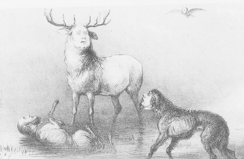 The king of the forest stands erect, proud, defiant.  In front of him, two hounds circle, baying for his blood.  The famous Doyle cartoon which you have before you this evening depicts the prelude to one of the greatest acts of savagery in modern British political history.  Indeed, it is hard to think of a parallel among the ranks of Prime Ministers.  Neville Chamberlain was not so greatly troubled by Churchill and other Tory dissidents as he sought an accommodation with Nazi Germany:  he kept an iron grip on his Party until shortly before his downfall which occurred quite suddenly in May 1940.  Margaret Thatcher’s departure in November 1990 was dramatic and painful, but not long drawn-out. Other Prime Ministers have been sent packing in disagreeable circumstances by their colleagues rather than the electorate.  But none had to endure the intense vilification to which Peel was subject in 1845-6, his last eighteen months in office during which he repealed the Corn Laws and ended economic protection for agriculture in the United Kingdom.  The great stag was given no respite or relief by the two remorseless hounds that pursued him and the large pack of angry Tories who supported them.